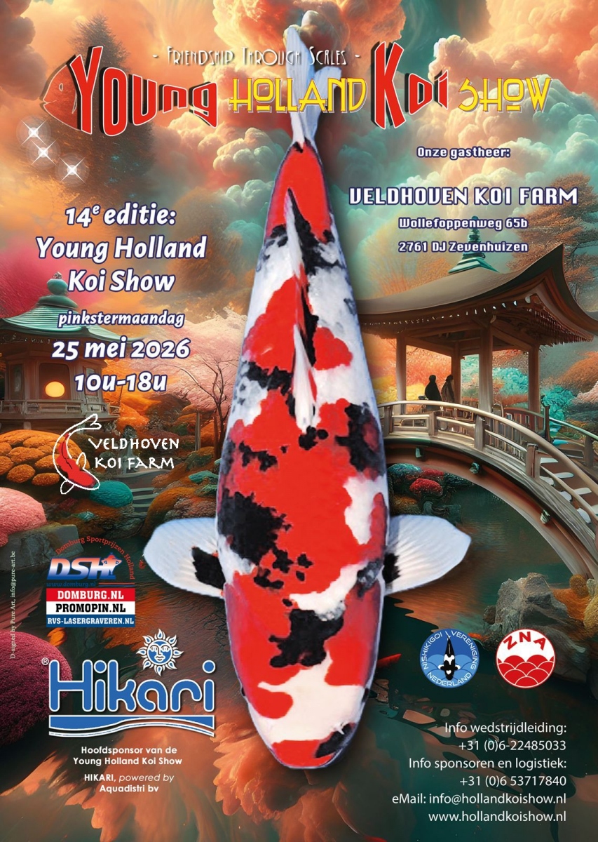 Dit jaar is het alweer tijd voor de 14e Young Holland Koi Show, dit keer op het terrein van Veldhoven Koi Farm, Wollefoppenweg 65b, 2761 DJ te Zevenhuizen.